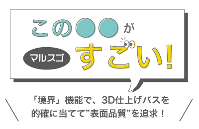 そんな時に活躍するのが「境界」機能を使った加工範囲の指定です。「曲面への境界投影」と「工具制御点の調整」のコマンドを活用することで、必要な部分だけにパスを当てることができ、仕上がりをきれいに保てます。 ダウンロード(pdf)