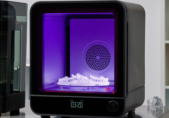 硬化するモデルの材料を選ぶだけで、事前にプログラムされた二次硬化設定により最適なキュアリングを実行します。
