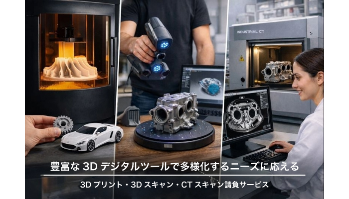 そこで、弊社ではより多くのニーズに対応するべく、様々な造形方式の3Dプリンタや測定方法の異なる3Dスキャナを多数導入。さらに3Dスキャナでは確認できないモデル内部の確認が可能なCTスキャナも導入しております。