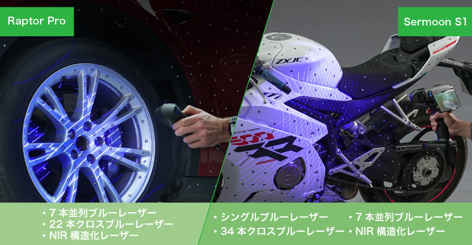| 最大精度 | 0.02 mm(ブルーレーザー) 0.075 mm(NIR構造化レーザー) |
