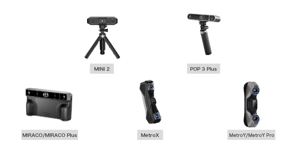 精細なモデルが撮れる「MINI 2」、鮮明なカラースキャンが撮れる「POP 3 Plus」、ソフトがスキャナに内蔵された「MIRACO」、高精度でスピードスキャンができる「MetroX」、小型の高精度に特化した「MetroY/MetroY Pro」とスキャン範囲と用途に合わせたシリーズ展開をしていますので、ニーズに合わせてお選びいただけます。