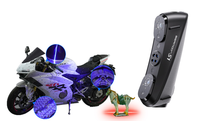 ブルーレーザーでは最大506mm×433mm@600mm、NIRレーザーでは1245mm×754mm@1000mmとワンショットで捉えるキャプチャエリアが広範囲のため、大型モデルであってもスキャン時間を短縮することができます。このエリアを活かし、Sermoon S1一台で最小5㎣から最大4000㎣の大型モデルまでスキャンすることが可能です。