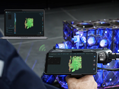 投射されたレーザーが直進性を保つことで、微細なディティールであっても狙った箇所に奥まで光を届け、2つのカメラで正確に形状を捉えます。