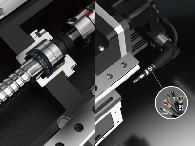 X軸・Y軸・Z軸すべての動作軸にC3クラスのボールねじとローラーリニアガイドを装備しています。また、密封型ベアリングを採用することで、長期にわたって安定した精度を提供します。さらに、プリテンション構造を採用することで、熱変位による寸法変化を抑えます。高剛性・低摩擦・低騒音を実現した駆動系は、正確な動作を安定して長期間にわたり行うことができます。