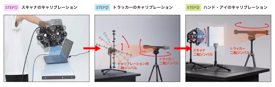 ②ジンバルを取り付けたトラッカーとキャリブレーションバーを設置したら、自動キャリブレーションを実行します。